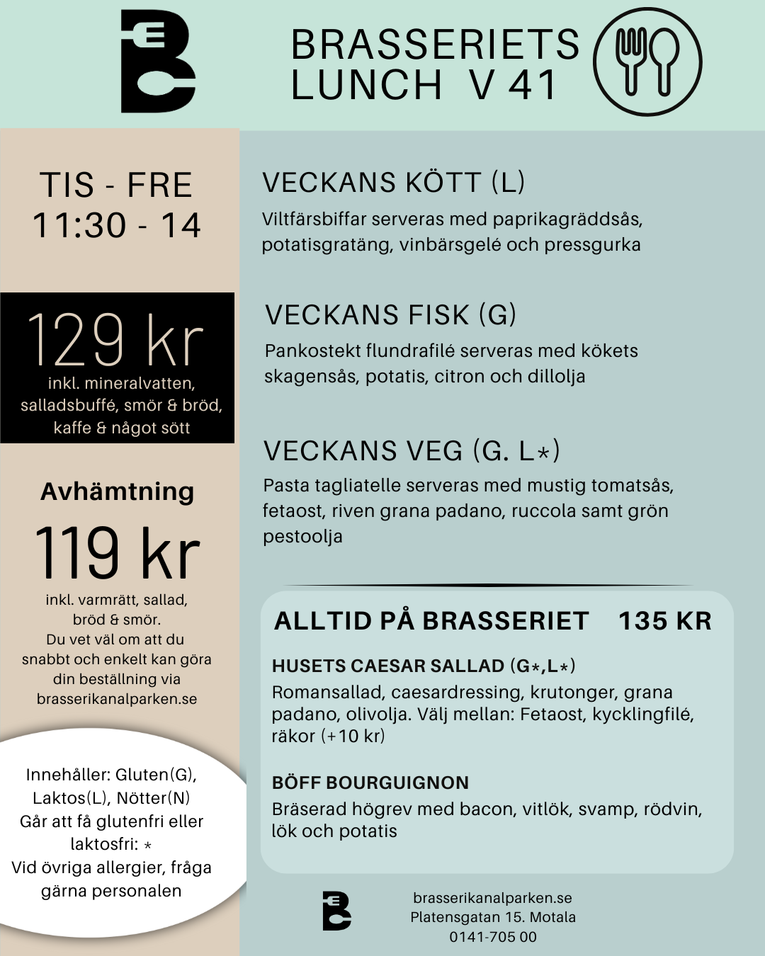Välkommen att njuta av en vällagad lunch mitt i Kanalparken.